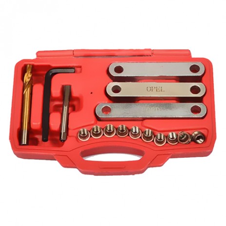 4. The tool set contains 7mm hex wrench, 3 pieces alignment plate, 1 piece of core step drill, 1 piece of M9*1.25mm tap and 10 pieces M9*1.25 Thread inserts.